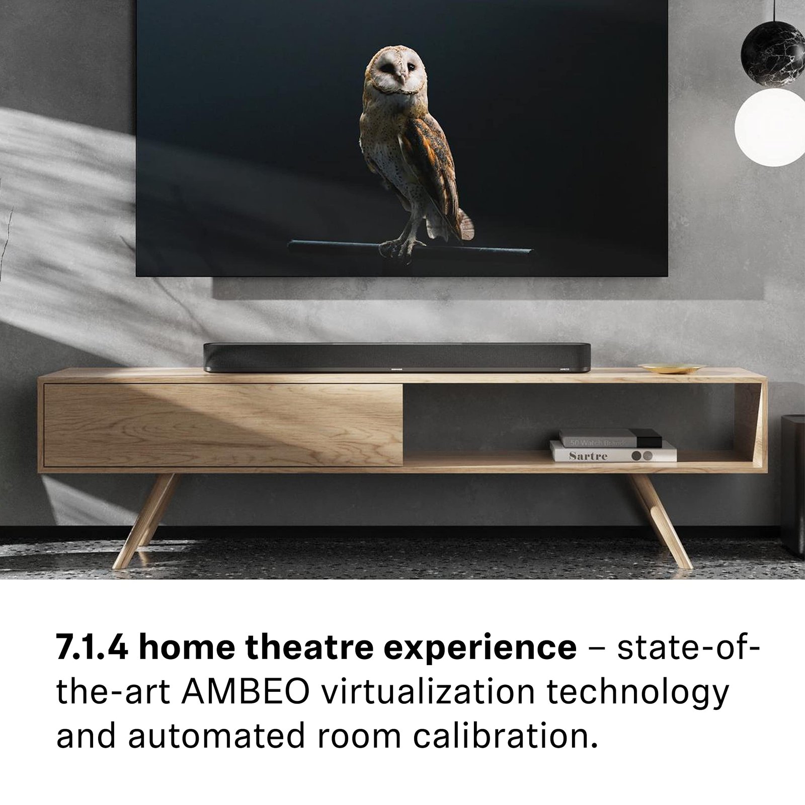 • Die AMBEO-Virtualisierungstechnologie verwandelt Audioinhalte in ein raumfüllendes Klangerlebnis: Erlebe das volle Potenzial eines 7.1.4. Heimkinosystems und lass dich durch die Erfassung der räumlichen Gegebenheiten von einem dreidimensionalen Klangerlebnis mitreißen